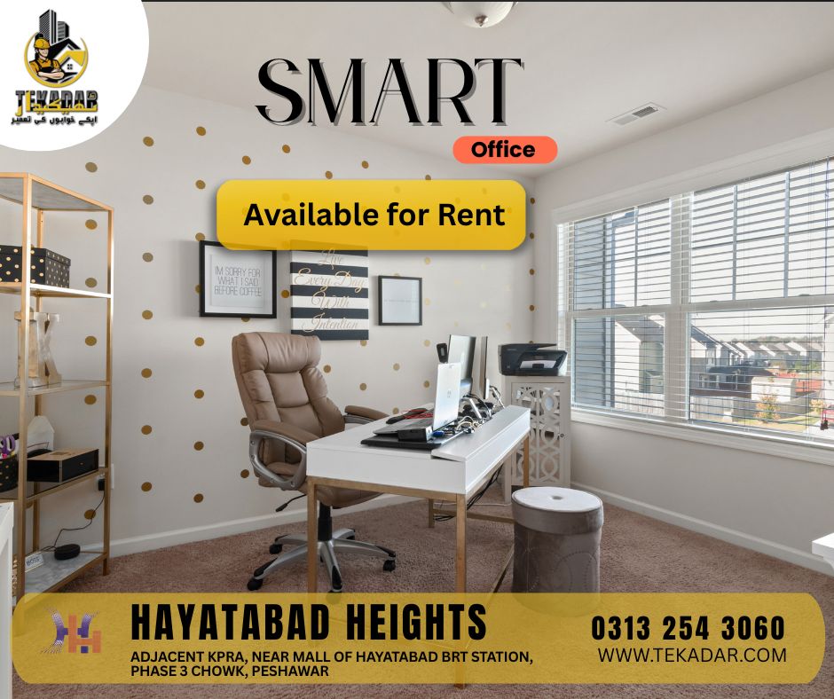 Office Space for Rent – Hayatabad Heights Prime Location | Professional Environment | Flexible TermsLooking to elevate your business presence? Step into success with our premium office spaces at Hayatabad Heights, located near Mall of Hayatabad (BRT Station), Phase 3 Chowk, Peshawar. Features Include:• Modern layout with natural light• Secure building with 24/7 surveillance• Easy...